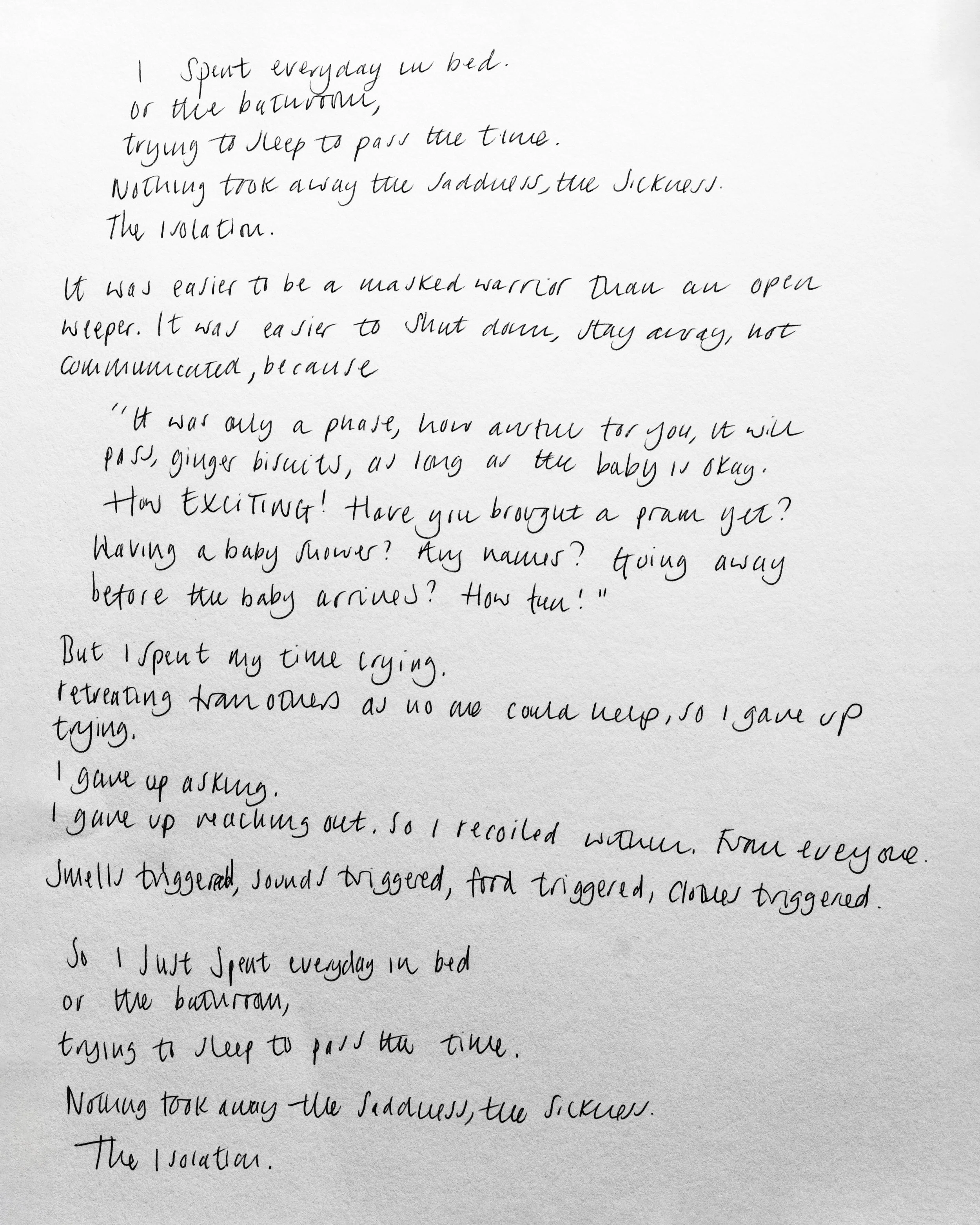 Karah – A story of hyperemesis gravidarum and mental health. “I spent every day in bed. Or in the bathroom trying to sleep to pass the time. Nothing could take away the sadness, the sickness .The isolation.”